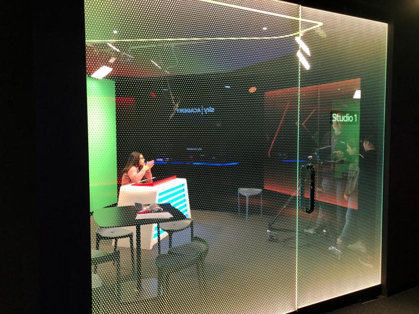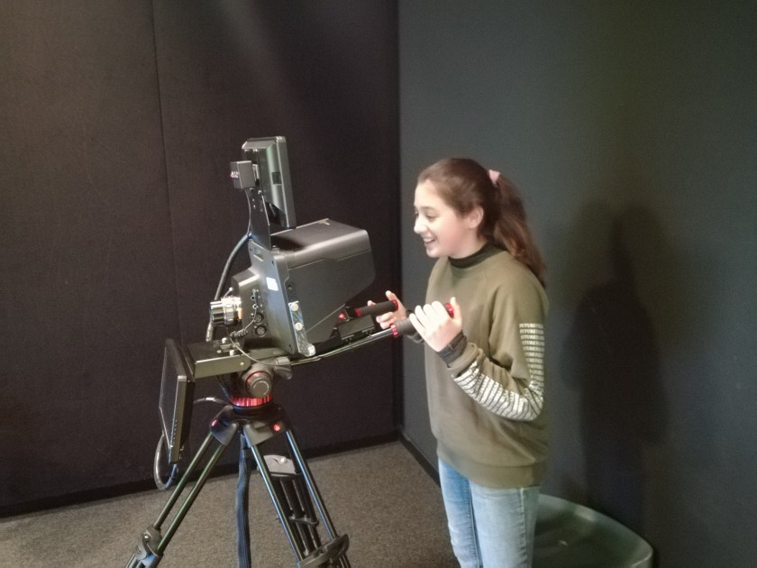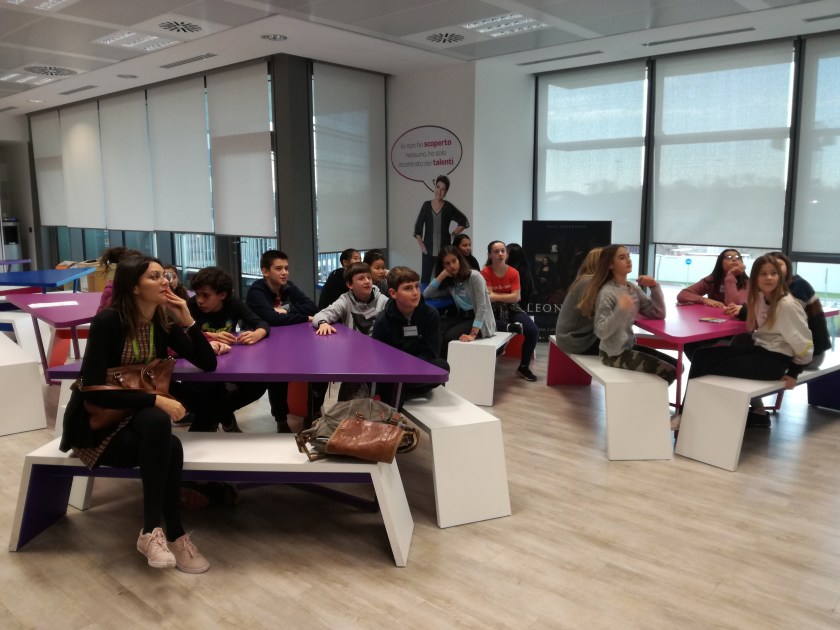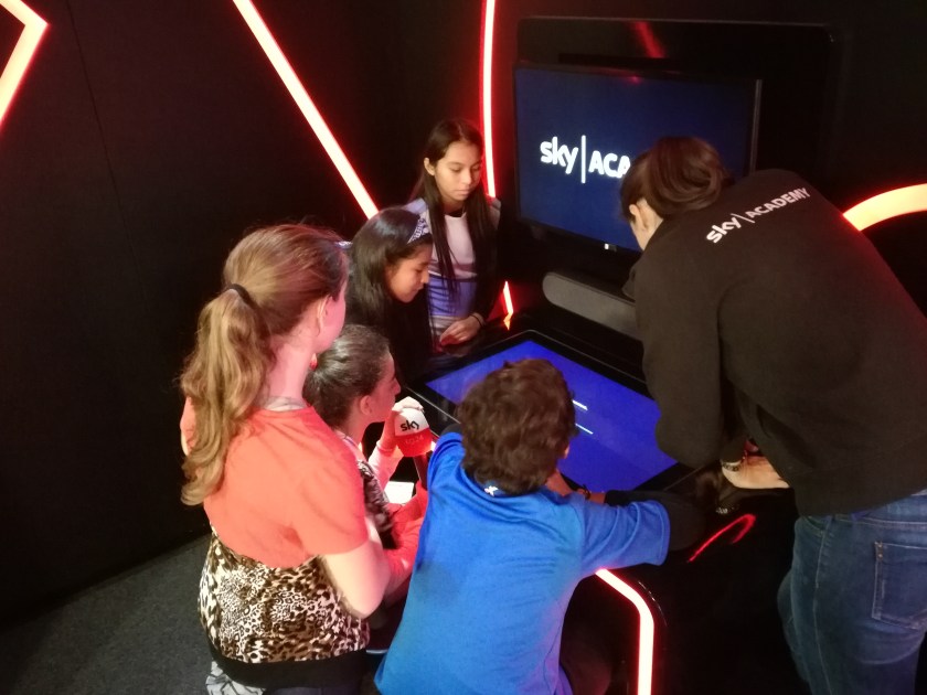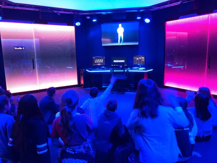Dopo siamo andati a visitare gli studi di Sky dove ci hanno spiegato l’uso di vari strumenti di ripresa e di scenografia.