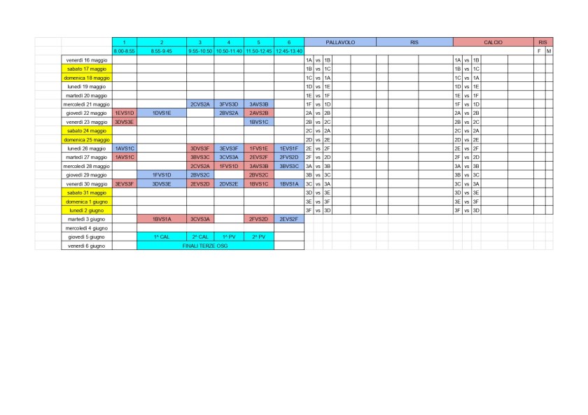 La prima “partita” si terrà il 21 maggio a scuola, le ultime partite delle prime e delle seconde il 3 giugno, mentre il 5 giugno ci saranno le finali delle terze e il sei le partite tra le terze che hanno vinto e le squadre dei professori.