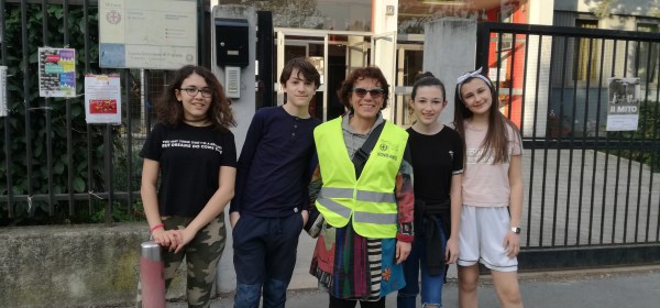 Da gennaio fuori della scuola, all’entrata, c’è una volontaria che si preoccupa di controllare che noi alunni nei minuti prima dell’inizio della scuola, trascorriamo il